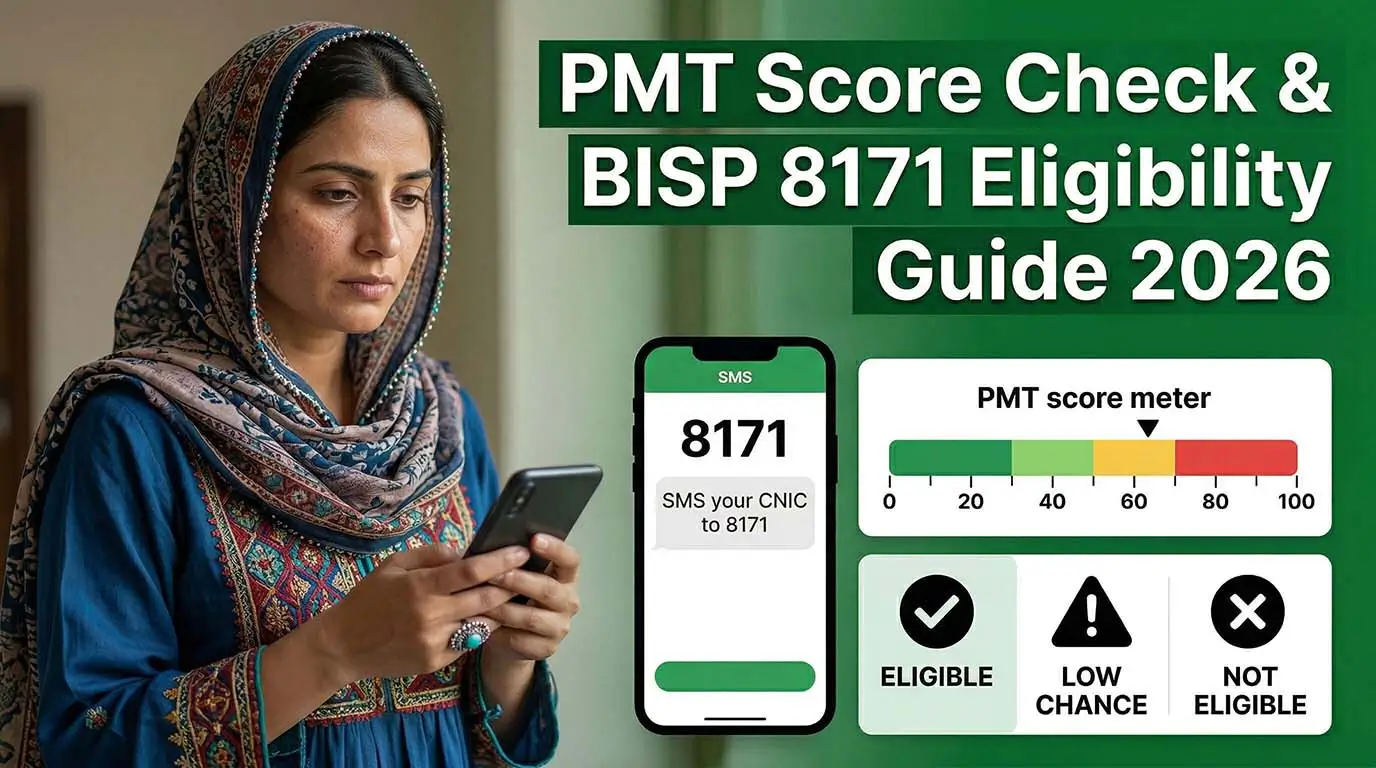 Your Poverty Score decides if you are eligible for BISP funds. A lower PMT Score means you have a higher chance of eligibility. You can check PMT Score using the 8171 Portal, 8171n SMS Service, or by visiting the BISP Tehsil office. You can stay eligible by giving correct information, avoiding misinformation, and keeping your data updated in the NSER survey. If something changes, update it at the BISP Tehsil office. Check PMT score again after a few days. Doing this will help you stay eligible and get your money on time.